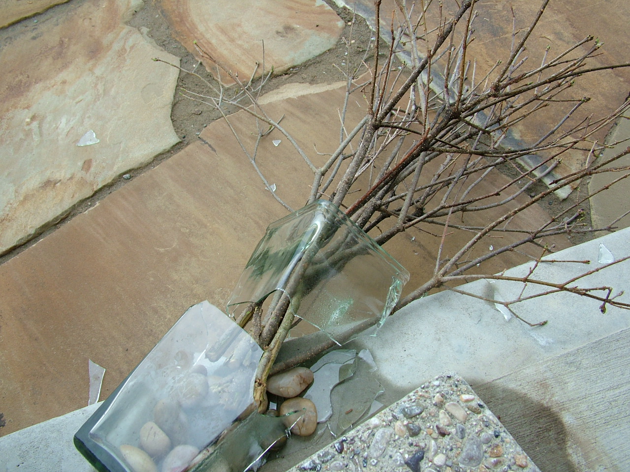 My hubby says that I should use a plastic vase instead of a glass one outside. Yeah, he’s right. Glad this episode of brokenness is an easy one to fix! I’ll let go of the vase, fill another with the waters of life and embrace the newness that is growing all around me. (Reference: see the second picture please!)