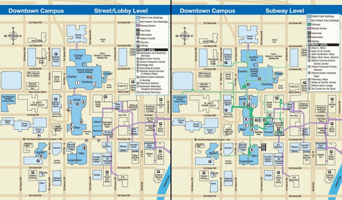 The little city that comprises Mayo Clinic: most buildings and surrounding businesses are connected via the underground Subway Level. You may never have to go outside in the cold!