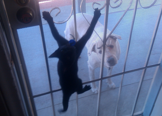 But what’s up with the hotel room? Life was great with the lady alpha home because she spent so much time talking sweet nothings to me. I don’t know why she suddenly was home so much after March of last year but I liked it. Then that long red-haired gal came in and out of the kitchen and said a sweet “hey” to me inbetween naps. My workouts with the tall guy were amazing as I leaped into the air rescuing that wretched green fuzzy ball from space and wrestling around in every contortion I could never imagine. Plenty of naps filled my day, table scraps highlighted the menu, and I even got a little pudgy. Life was good.