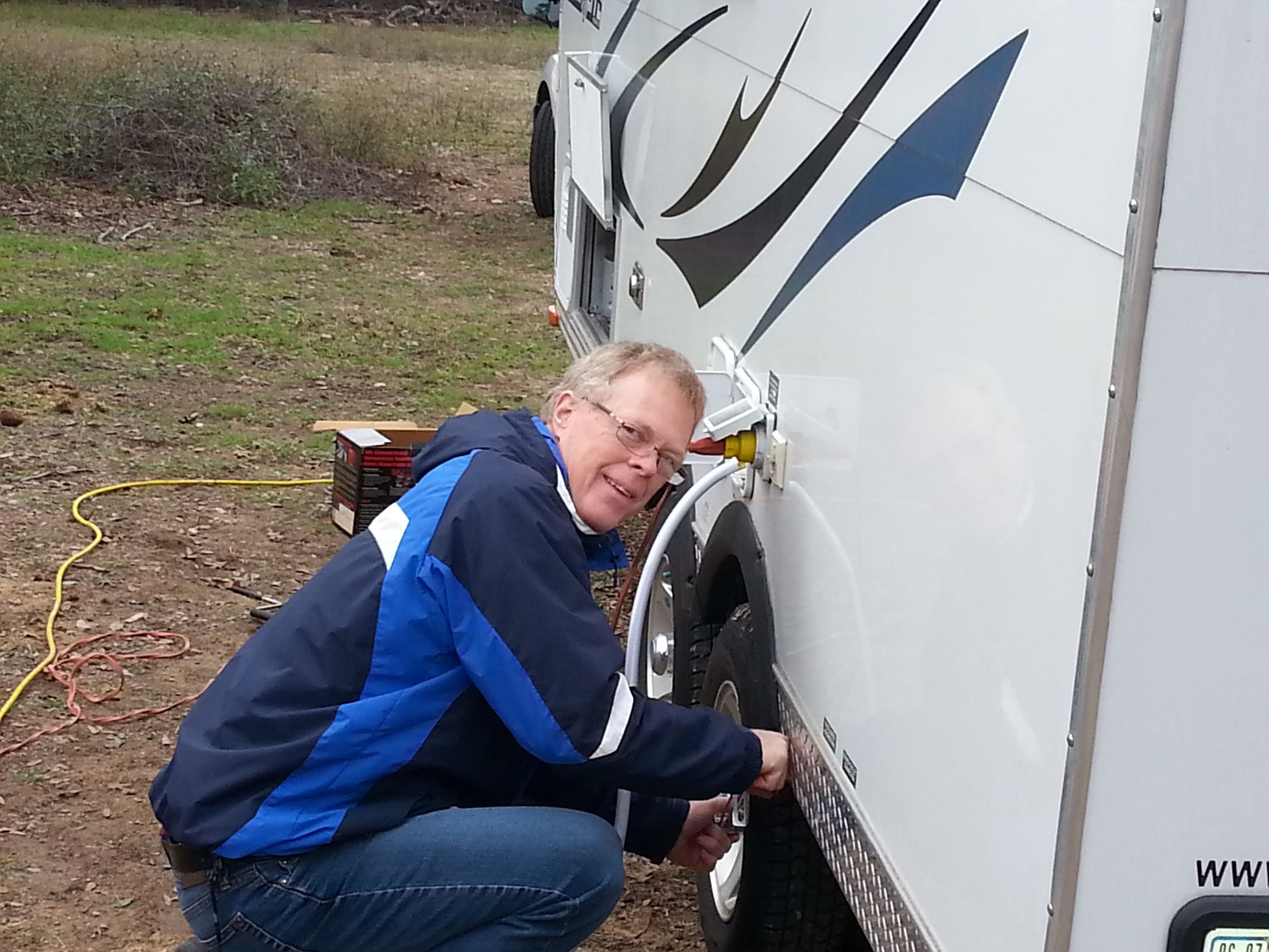 We had decided to pack four gallons of water just in case something went awry during our second cold weather camping trip this season. The related online blogs recommended this among other tips such as purchasing a heated hose and waiting to un-winterize the travel trailer until we had traveled enough south to avoid freezing temperatures overnight. And so we prepared accordingly reviewing our long “To Do” list of stuff over and over again before heading out the door. Check!