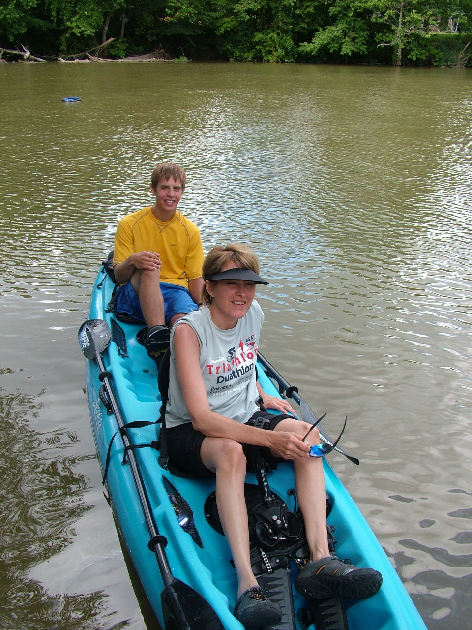 Steve rapidly progressed that summer as he shifted from a recreational to a competitive United States Canoe Association (USCA) racer. I watched closely as he increasingly dedicated himself to all things paddling: studying the equipment, kayak dimensions, paddling technique videos, and outings with both Indiana racers and the Fort Wayne kayaking group. Hmmm. I had an important decision to make. Either I would master this paddling thing or spend lots of afternoons home alone as he perfected his craft away from home without me. To insist that he stay home with me would get in the way of the paddling athlete he was becoming. After all, I did enjoy the fruits of all that cycling and marathon racing. 🙂